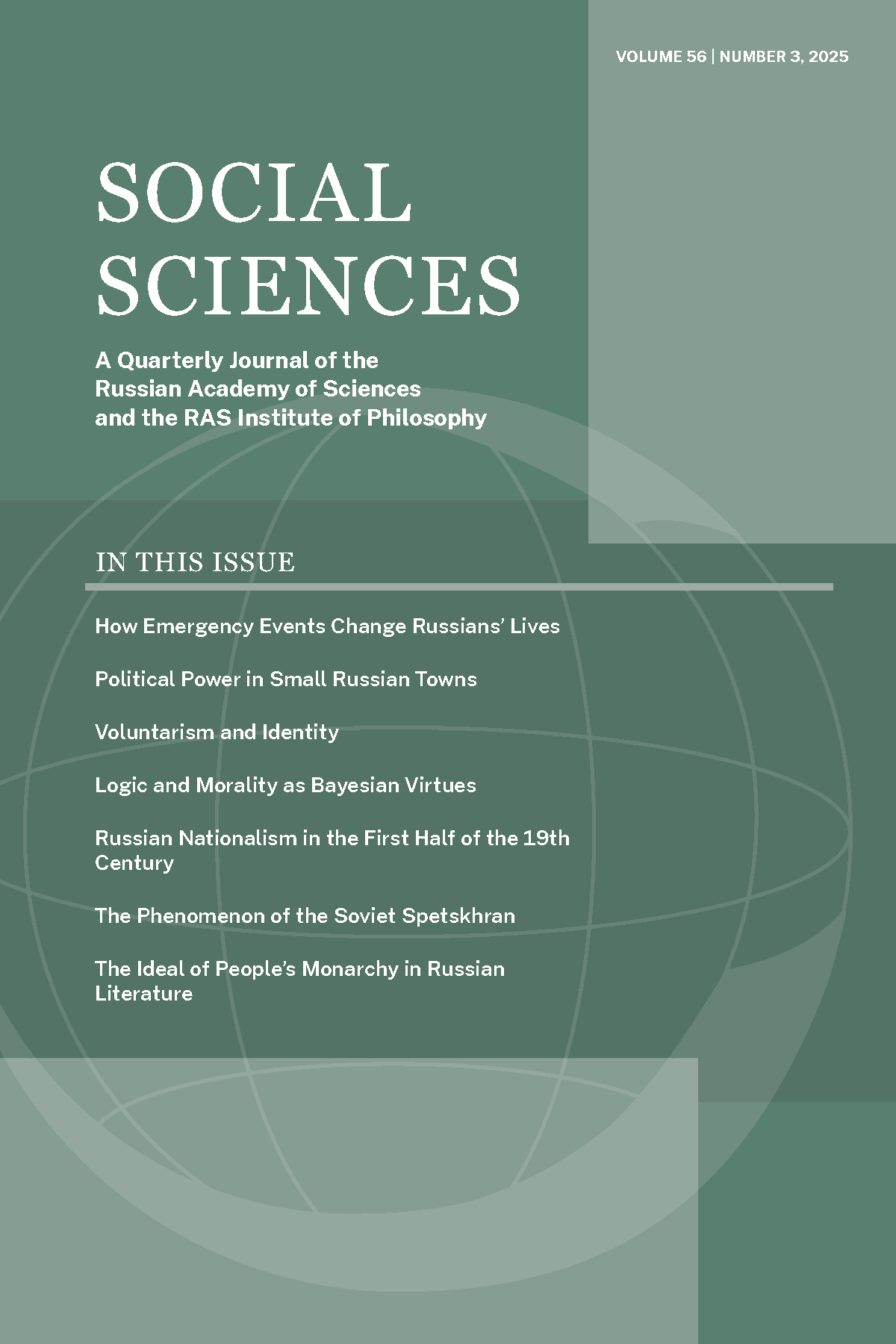 Covering the most pressing issues of Russia’s social and economic development, Social Sciences includes articles on philosophy, history, economics, politics, sociology, law, philology, psychology, ethnography, archaeology, literature, and culture.